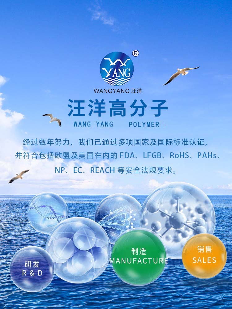汪洋高分子創(chuàng)立于1999年,是一家集研發(fā)、制造、銷(xiāo)售熱塑性彈性體TPE系列:〈醫(yī)療器具用熱塑性彈性體TPE、雙色包覆料TPE、TPR、TR、TPV、TPU、TPEE、TPAE〉;聚氯乙烯PVC系列:輸血(液)器具用軟聚氯乙烯塑料、NPVC水晶透明料、TPVC彈性料、啞光料);工程塑料系列:〈聚酰亞胺PI、聚醚酰亞胺PEI、醫(yī)用透明抗低溫PP、熔噴PP專(zhuān)用料、PP降溫母料、醫(yī)用透明PA、PA6、PA66、PC、PC/ABS、PBT〉合金、合金電鍍級(jí)、增強(qiáng)、阻燃、增韌、填充;增韌母料系列;WYANGBIO改性生物降解塑料(PLA)系列;WYANGCLEAN螺桿清洗劑系列等產(chǎn)品的高新技術(shù)企業(yè)。